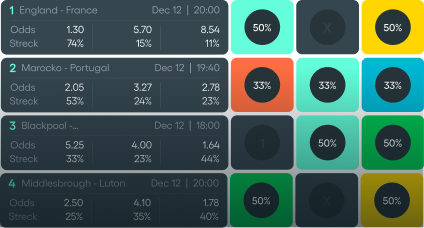 En stor anledning till att det går att vara en vinnande spelare på Stryktipset och Europatipset är för att medelspelaren tenderar att spela för likt varandra. Nästan varje omgång finns det lag med betydligt högre streckfördelning än vad oddsmarknaden indikerar. Genom att trycka på knappen “visa odds som %” kan man jämföra oddsen med streckfördelningen och på så vis hitta ställen där differensen är för stor.
